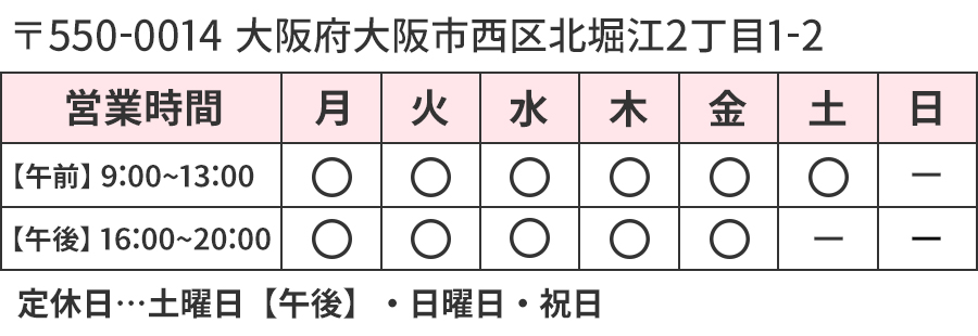| 住所 | 〒550-0014 大阪府大阪市西区北堀江2丁目1−2 |